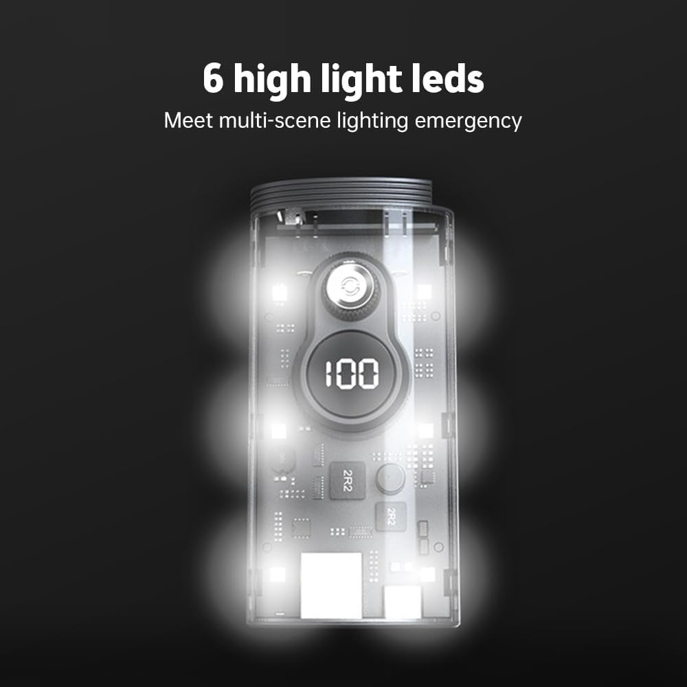 - 3 في 1 متعددة الاستخدام: يأتي مع 6 مصابيح LED عالية السطوع وبطاريتين 5000mAh، يمكن استخدامه كضوء طوارئ وشاحن للطاقة يدعم بروتوكولات QC3.0، PD3.0، FCP، SCP، AFC.