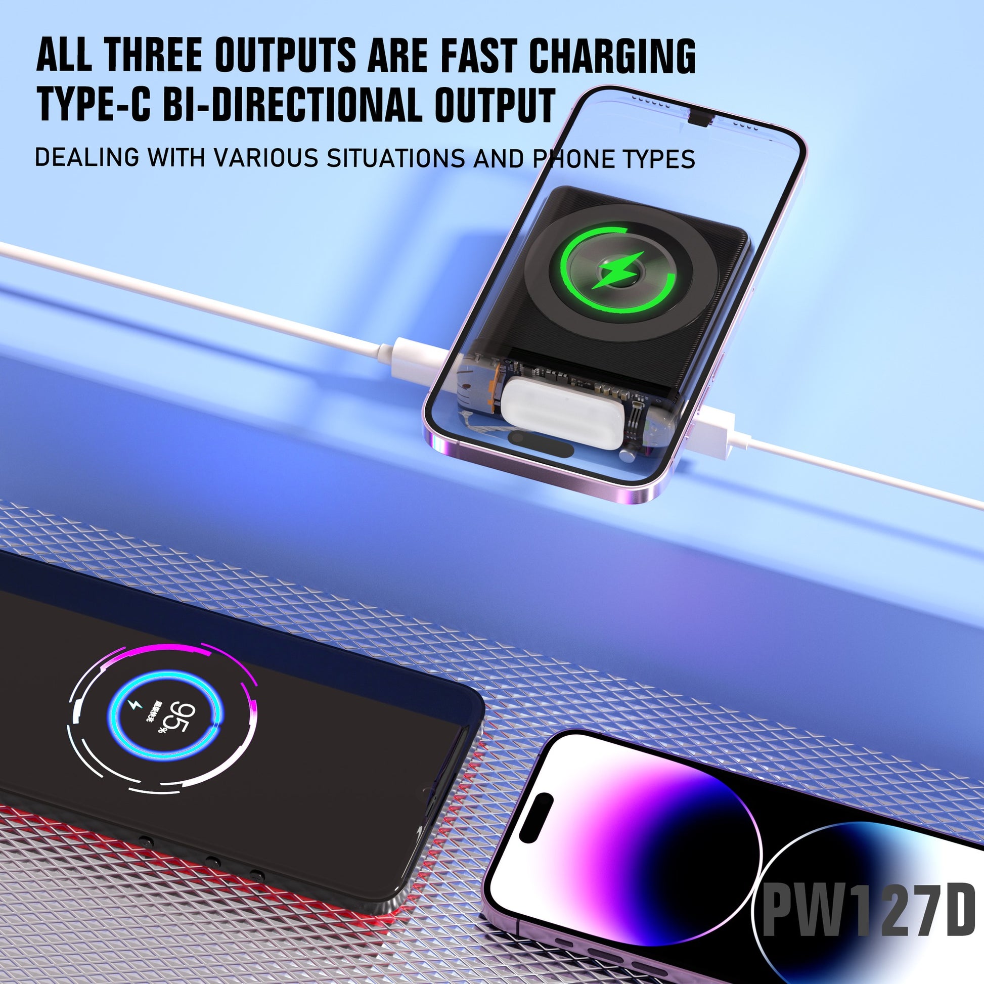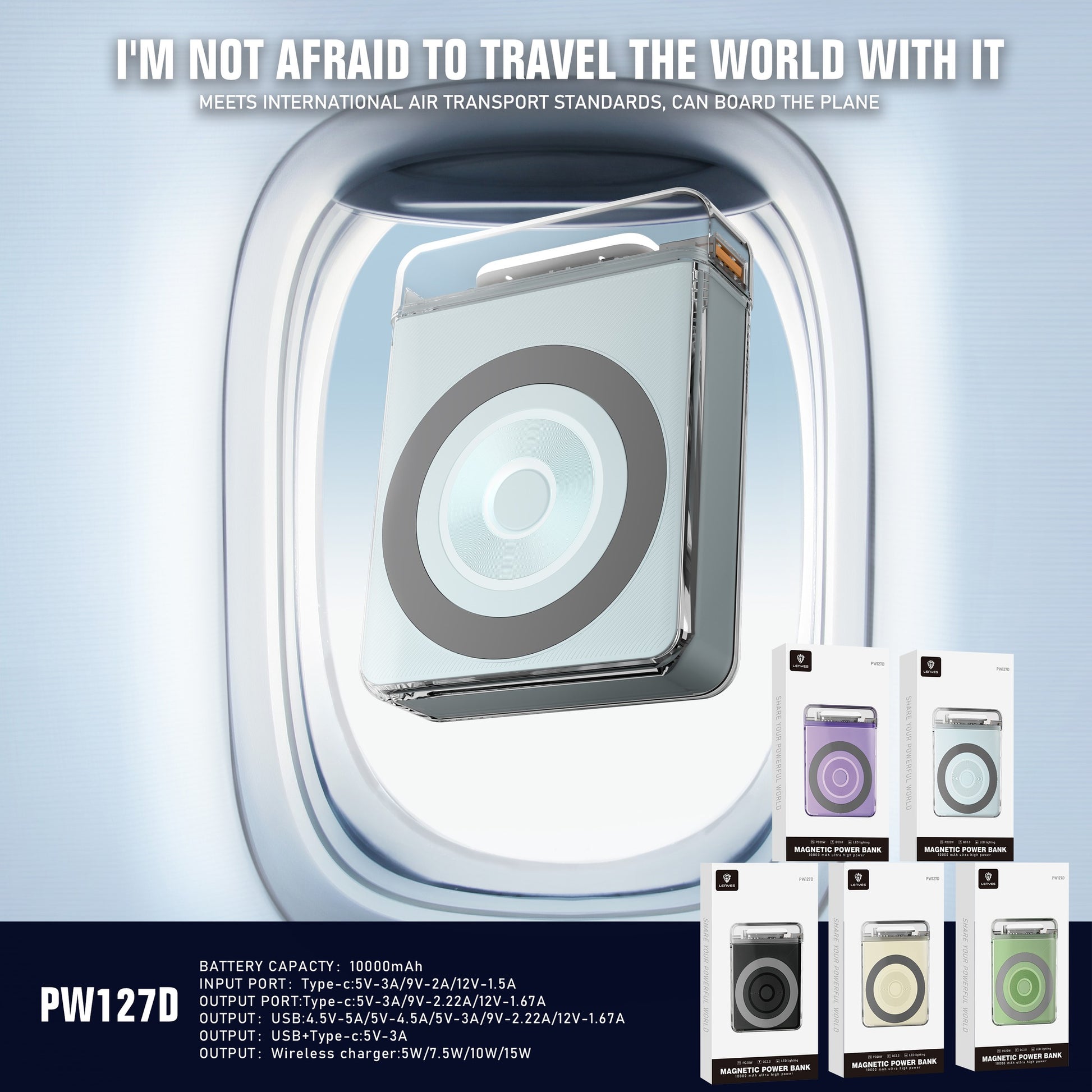 بنك طاقة لاسلكي مغناطيسي محمول 10000 مللي أمبير في الساعة بقدرة 20 وات