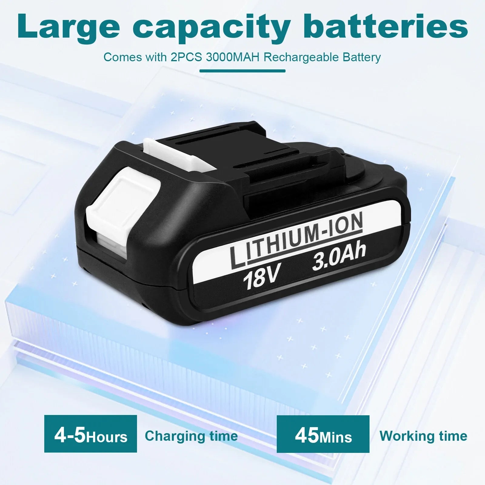- 🔋 Dual Battery System: Comes with 2×3000mAh rechargeable batteries for long-lasting cleaning sessions.